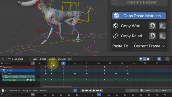 - Selected Keyframes - Pasted to all the selected keyframes, also the handles will be adjusted to match the matrix during the inbetween frames.