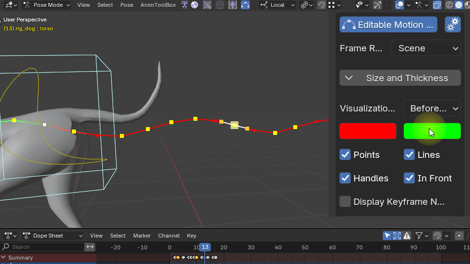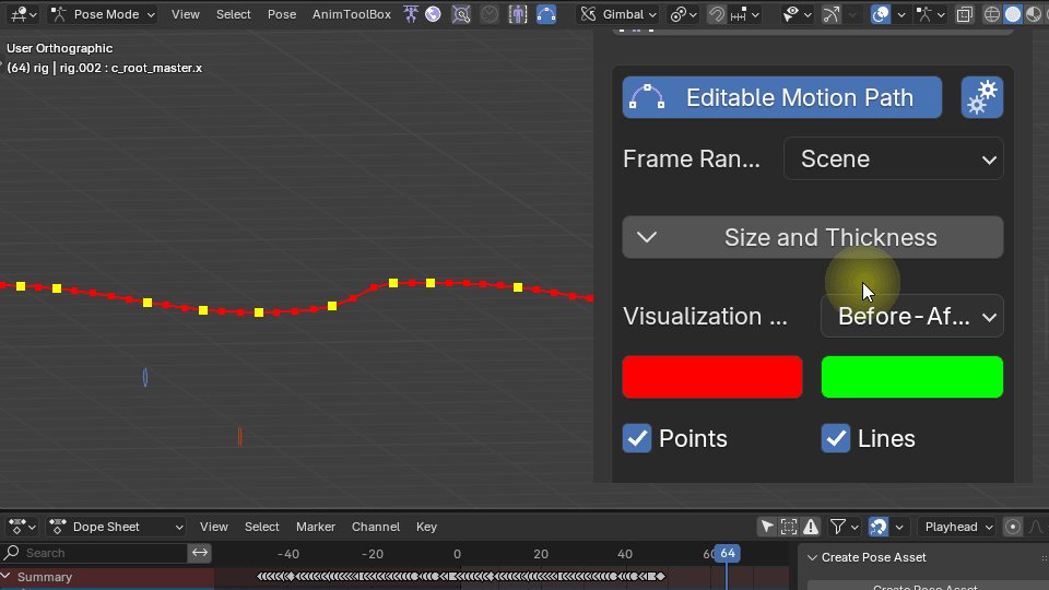 It is possible to control the visualization of the motion path. Adjusts the line thickness, keyframes and frames size using the sliders.